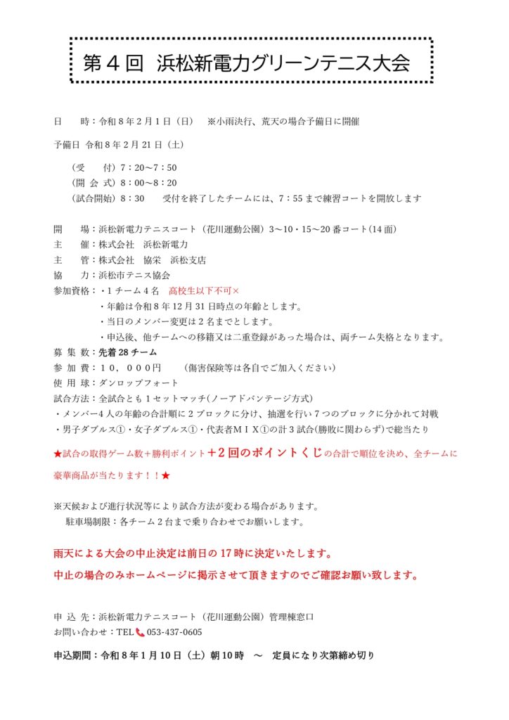 昨年も大好評だった【浜松新電力グリーンテニス大会☆彡】今年も開催いたします!!